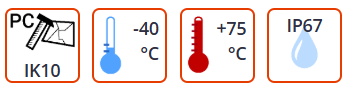 Vanntett og støvtett industriarmatur med LED-moduler og spesialoptikk, utviklet for bruk i industrielle installasjoner og i områder med høye eller svært lave omgivelsestemperaturer. Armaturhuset er laget av pulverlakkert rustfritt eller galvanisert stål, mens diffusoren er laget av polykarbonat.